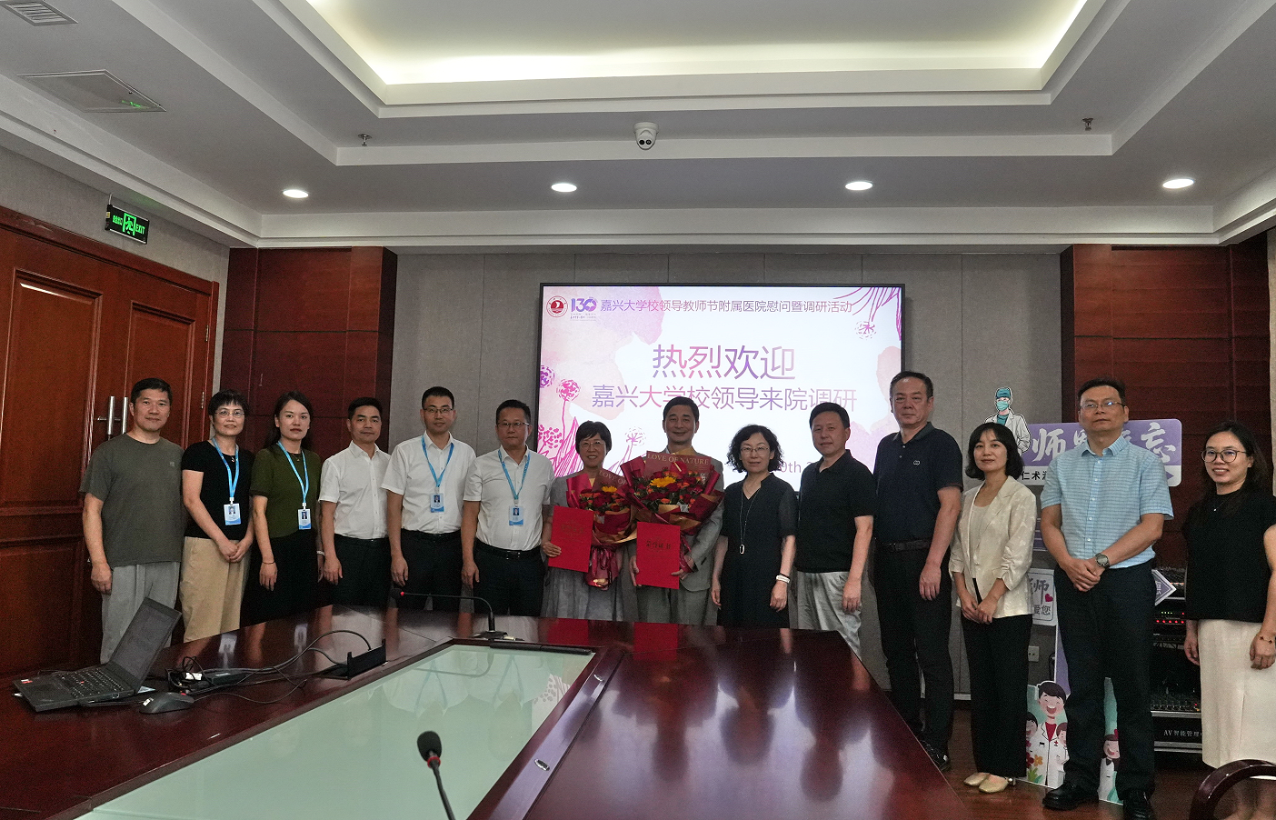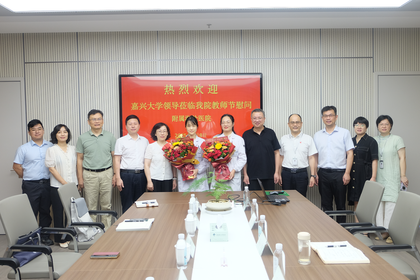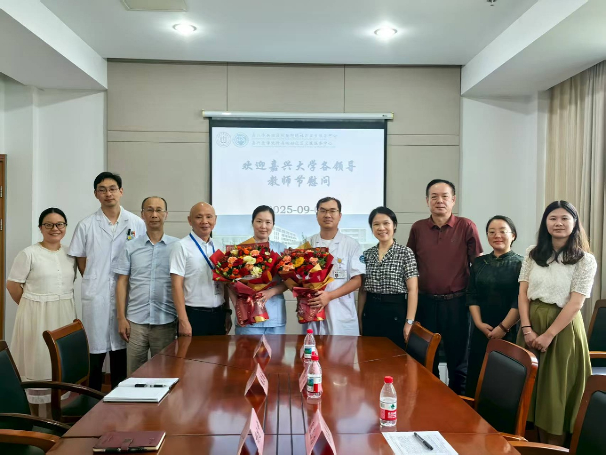 附属城南社区卫生服务中心的临床教师代表,为他们送上鲜花,致以祝福,通过他们向医院所有临床教师和教学管理人员致以节日问候。并就医院医疗、教学和科研工作进行座谈调研。