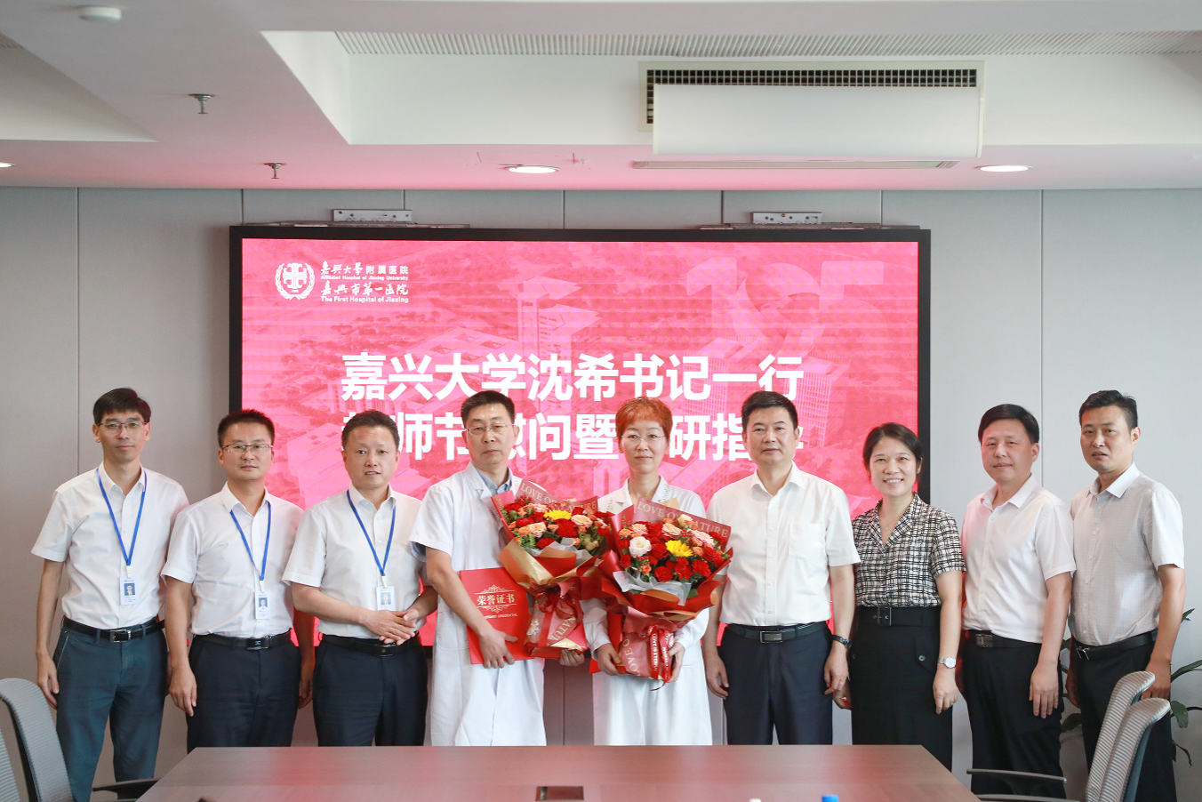 沈希等校领导感谢各附属医院一直以来对学校医学教育工作的支持和付出,希望广大临床教师不断提升医疗水平、教育教学能力、科学研究能力,在医学人才培养与医学科技创新方面为“健康浙江”“健康嘉兴”建设贡献更多“嘉大”力量,努力服务好地方卫生健康事业高质量发展需要。为建设“有特色、善创新的综合性高水平大学”作出更大的贡献。