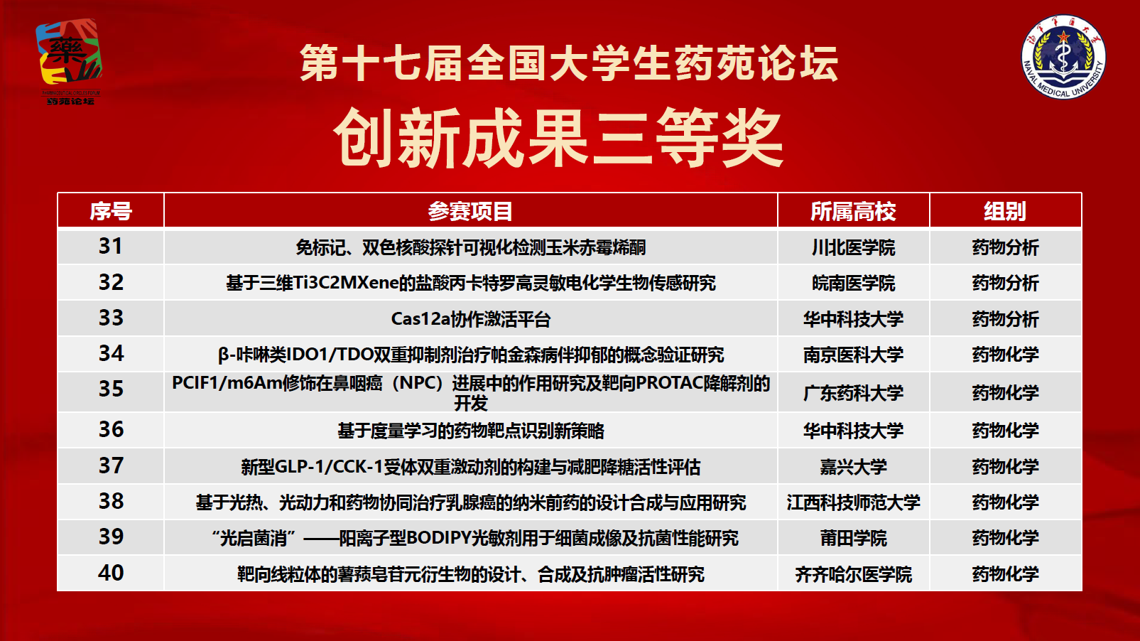 2025年10月18日,由全国大学生药苑论坛组委会主办、海军军医大学承办的第十七届“全国大学生药苑论坛”决赛圆满落幕。av在线看