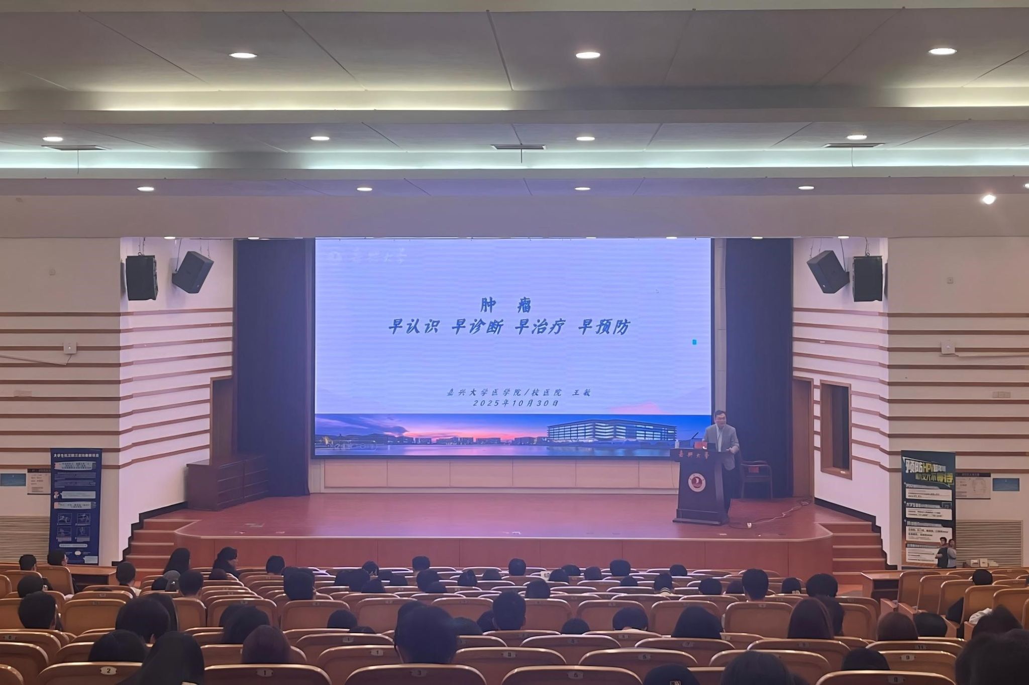 2025年10月30日,校医院在梁林校区TCL国际会议报告厅举办“早知早治防肿瘤,共筑防线护校园”专题健康讲座。此次讲座特邀嘉兴市疾病预防控制中心应急办主任富小飞、av在线看