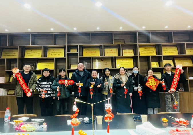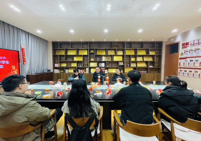 党委书记陈云飞、党委副书记朱莹、辅导员代表与十名寒假留校过春节的学生欢聚一堂,共话团圆,喜迎新春。