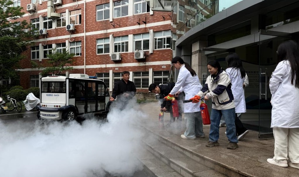 于2026年4月23日中午在医学实验中心(仁术楼)门口广场,成功举办了2026年春季消防安全培训演练。学院共50多名教师、学生参加了本次演练。演练特邀校保卫处丁伟老师、田野老师进行现场专业讲解与操作指导。