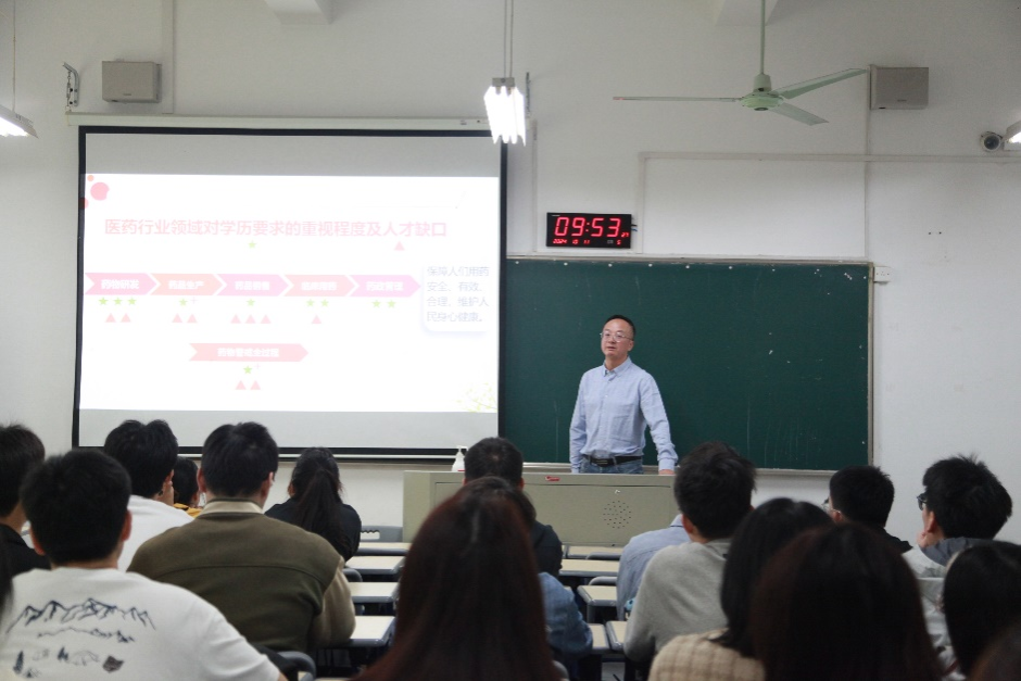 开展了生物与医药专业硕士研究生招生宣讲与现场答疑,来自药学、制药工程等专业20多名大四本科生参加。